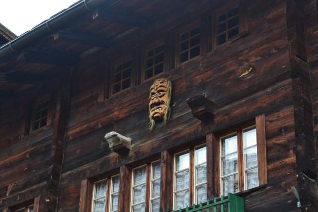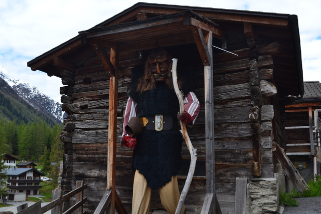 レッチェンタール渓谷の最奥部にあるブラッテン村。奥にアレッチ氷河の西端が見えます。Walserhausの穀倉をよく見ると9本の木杭の上に平らな石のねずみ返しを敷いてその上に穀倉がどかんと乗ってる。地震がない地域とはいえなかなかの構造。男鹿半島のなまはげによく似た祭祀が残ってるのも面白い。キリスト教が伝わるより以前に土着信仰が根付いていたんでしょう。