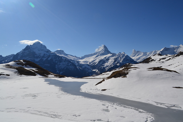 晴れたー!!グリンデルワルトのフィルストからバッハアルプ湖までお散歩。標高2200m、湖は結氷してます。あたりは静まり返って足を止めると雪解け水が滴る音だけが聞こえます。スイス出張の合間の土日と雲ひとつない快晴の日が重なるのを1年半待ちました。